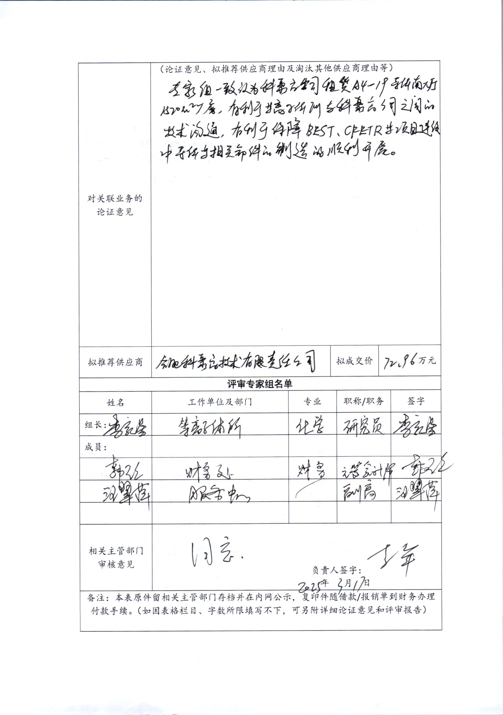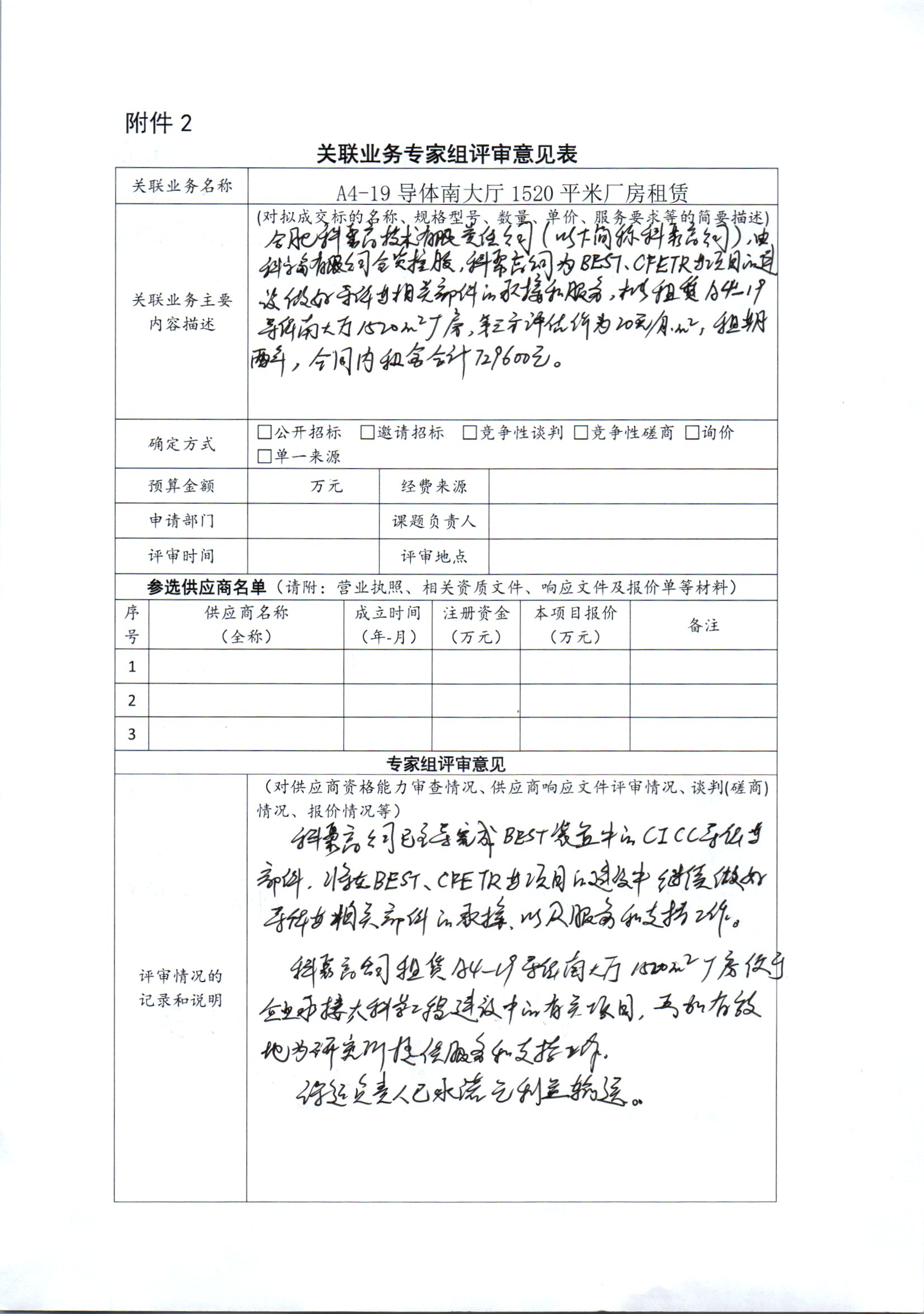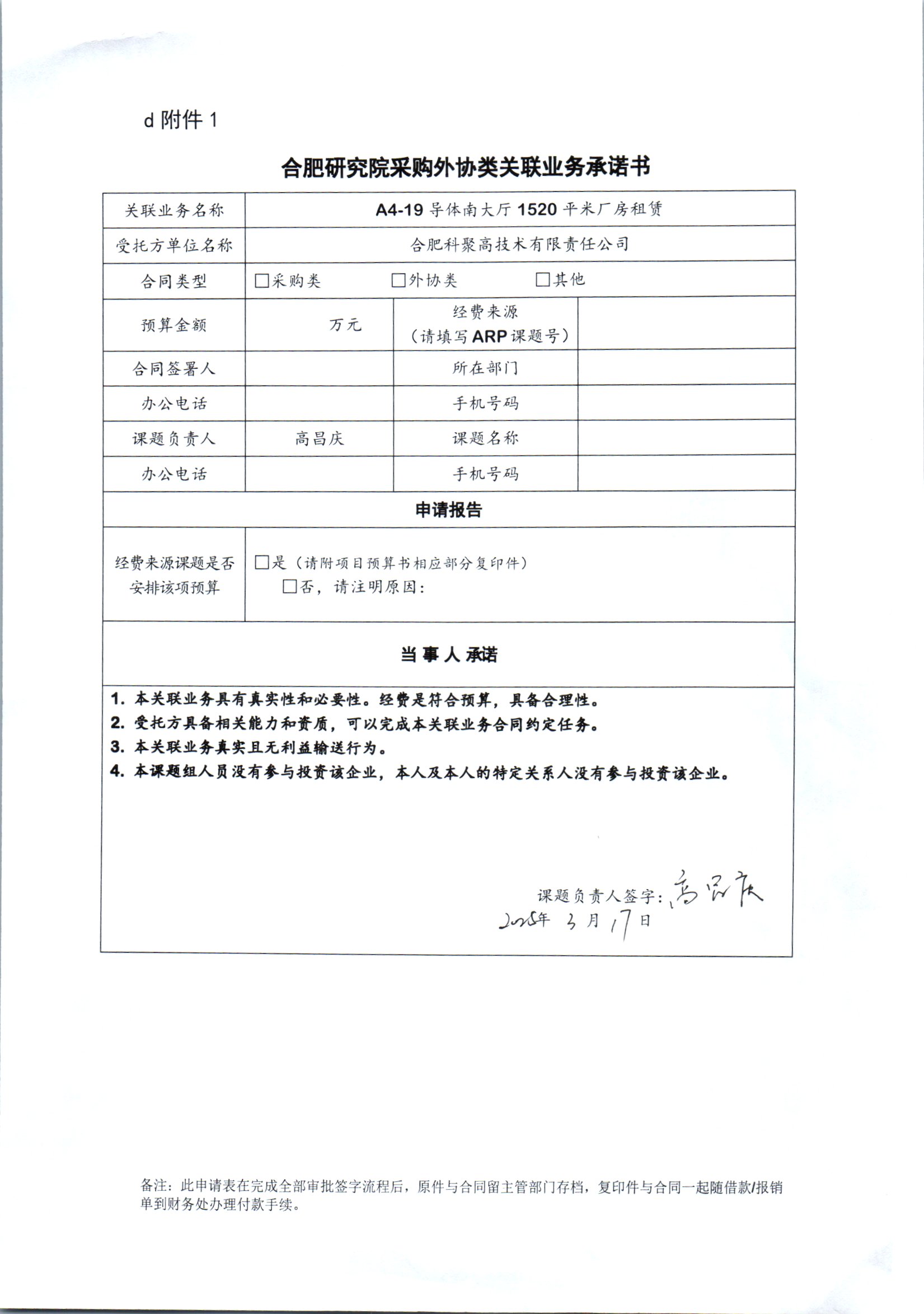 根据《中国科学院关于加强科研项目关联业务管理的暂行规定》(科发条财字〔2015〕125号)、《中国科学院合肥物质科学研究院关于加强科研项目关联业务管理的实施细则》(科合院发资字〔2021〕8号)、《合肥研究院加强关联业务管理暂行办法》(科合院发资字〔2022〕1号)《中科院条财局关于进一步加强房屋出租出借管理的通知》(科发条财函字[2022]17号)要求,现就我院房屋出租给合肥科聚高技术有限责任公司进行关联业务公示。