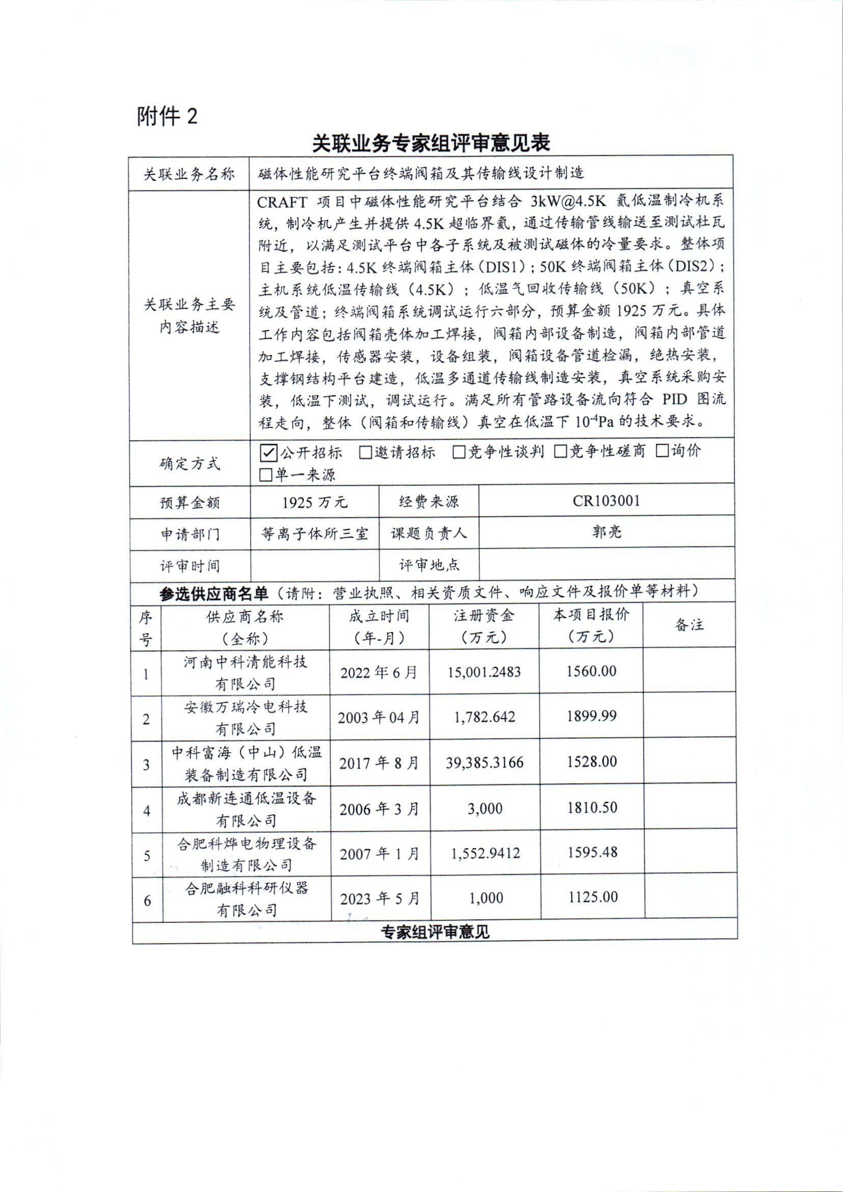 根据《中国科学院关于加强科研项目关联业务管理的暂行规定》(科发条财字〔2015〕125号)、《中国科学院合肥物质科学研究院关于加强科研项目关联业务管理的实施细则》(科合院发资字〔2021〕8号)、《合肥研究院加强关联业务管理暂行办法》(科合院发资字〔2022〕1号)要求,现就我院委托河南中科清能科技有限公司进行磁体性能研究平台终端阀箱及其传输线设计制造项目进行关联业务公示。