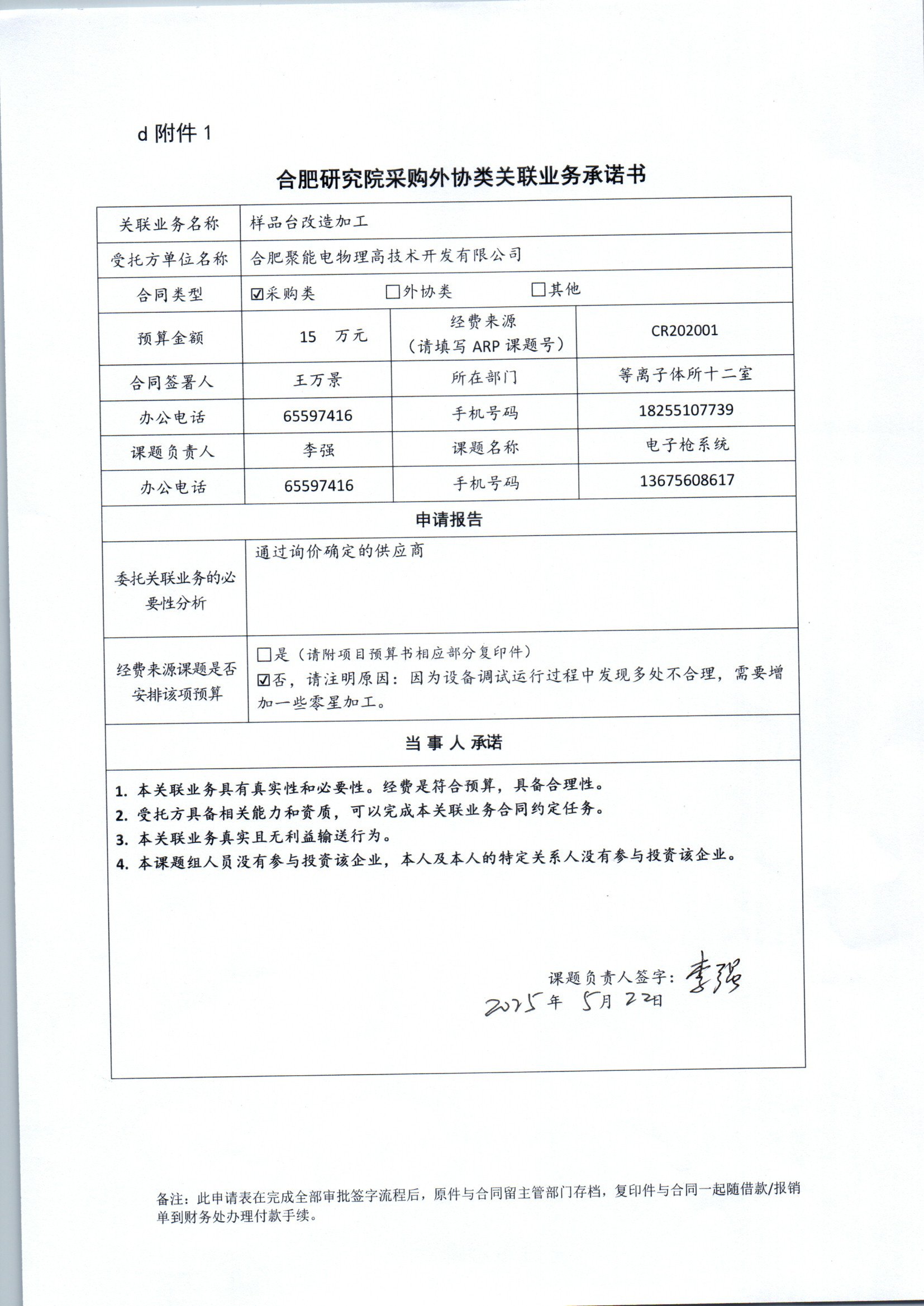 根据《中国科学院关于加强科研项目关联业务管理的暂行规定》(科发条财字〔2015〕125号)、《中国科学院合肥物质科学研究院关于加强科研项目关联业务管理的实施细则》(科合院发资字〔2021〕8号)、《合肥研究院加强关联业务管理暂行办法》(科合院发资字〔2022〕 1号)、《合肥物质院加强关联业务管理补充规定》(科合院发资字〔2025〕1号)要求,现就我院委托合肥聚能电物理高技术开发有限公司进行样品台改造加工的关联业务做公示。