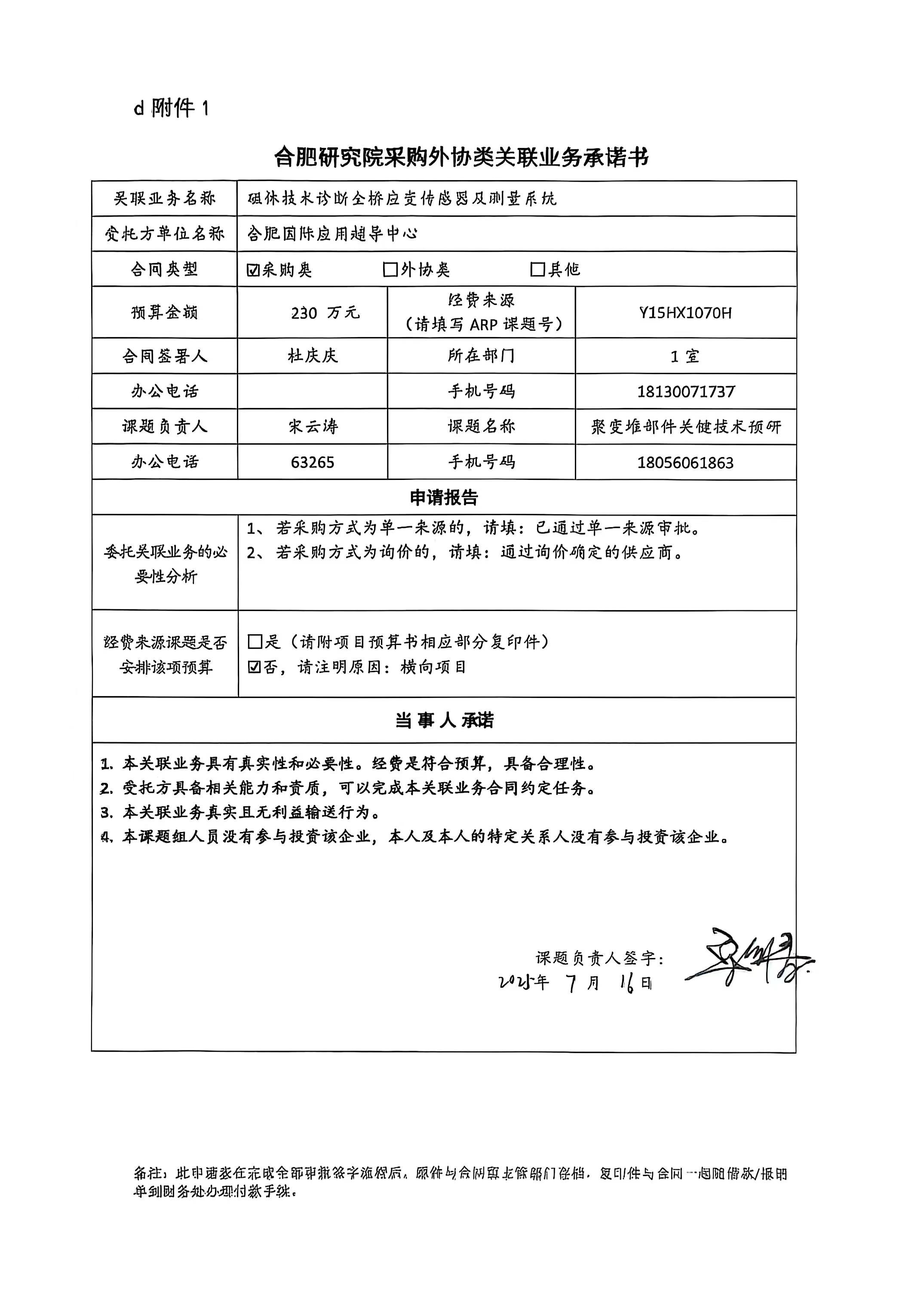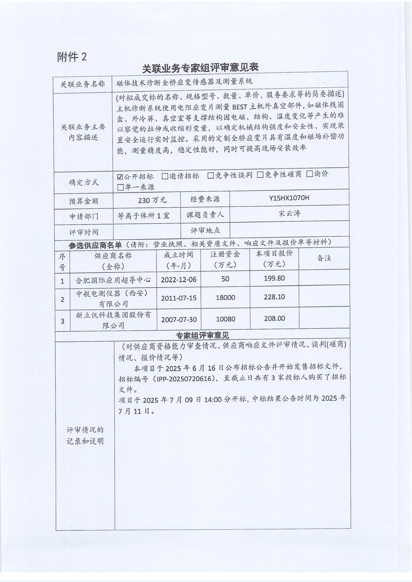 根据《中国科学院关于加强科研项目关联业务管理的暂行规定》(科发条财字〔2015〕125号)、《中国科学院合肥物质科学研究院关于加强科研项目关联业务管理的实施细则》(科合院发资字〔2021〕8号)、《合肥研究院加强关联业务管理暂行办法》(科合院发资字〔2022〕1号)、《合肥物质院加强关联业务管理补充规定》(科合院发资字〔2025〕1号)要求,现就我院向合肥国际应用超导中心采购磁体技术诊断全桥应变传感器及测量系统的关联业务公示。